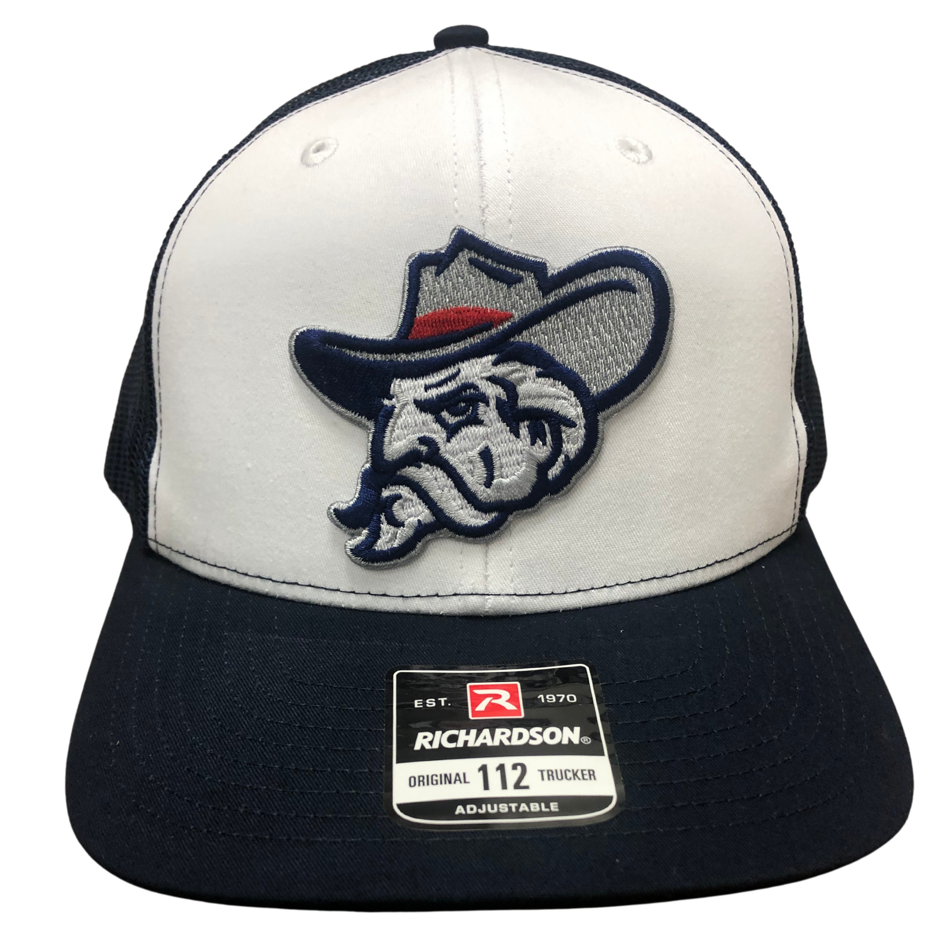 Mesh Back Cap (White Front, navy back, navy bill; Colonel Reb Head logo)