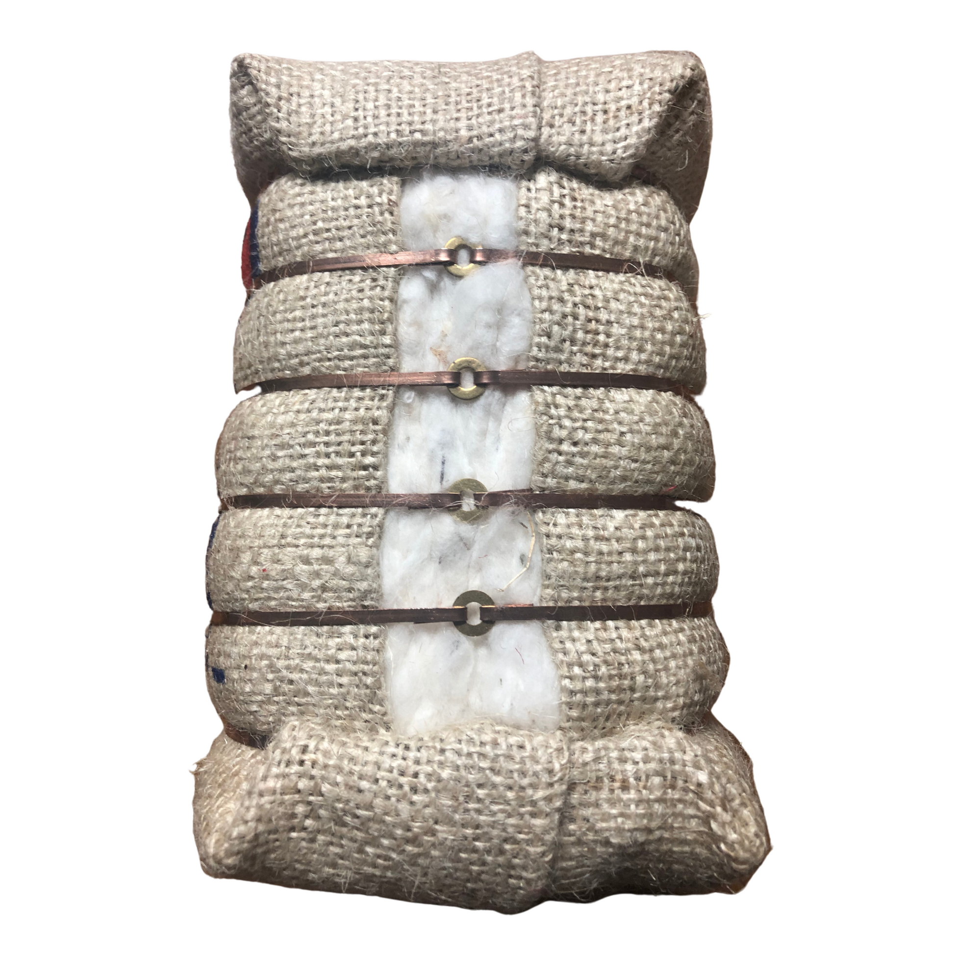 This 6-inch Colonel Reb Traditional Pose Cotton Bale features the logo on one side. And when you wind it up, this musical bale plays "Dixie." Handmade with 100% cotton and wrapped in burlap with metal ties.