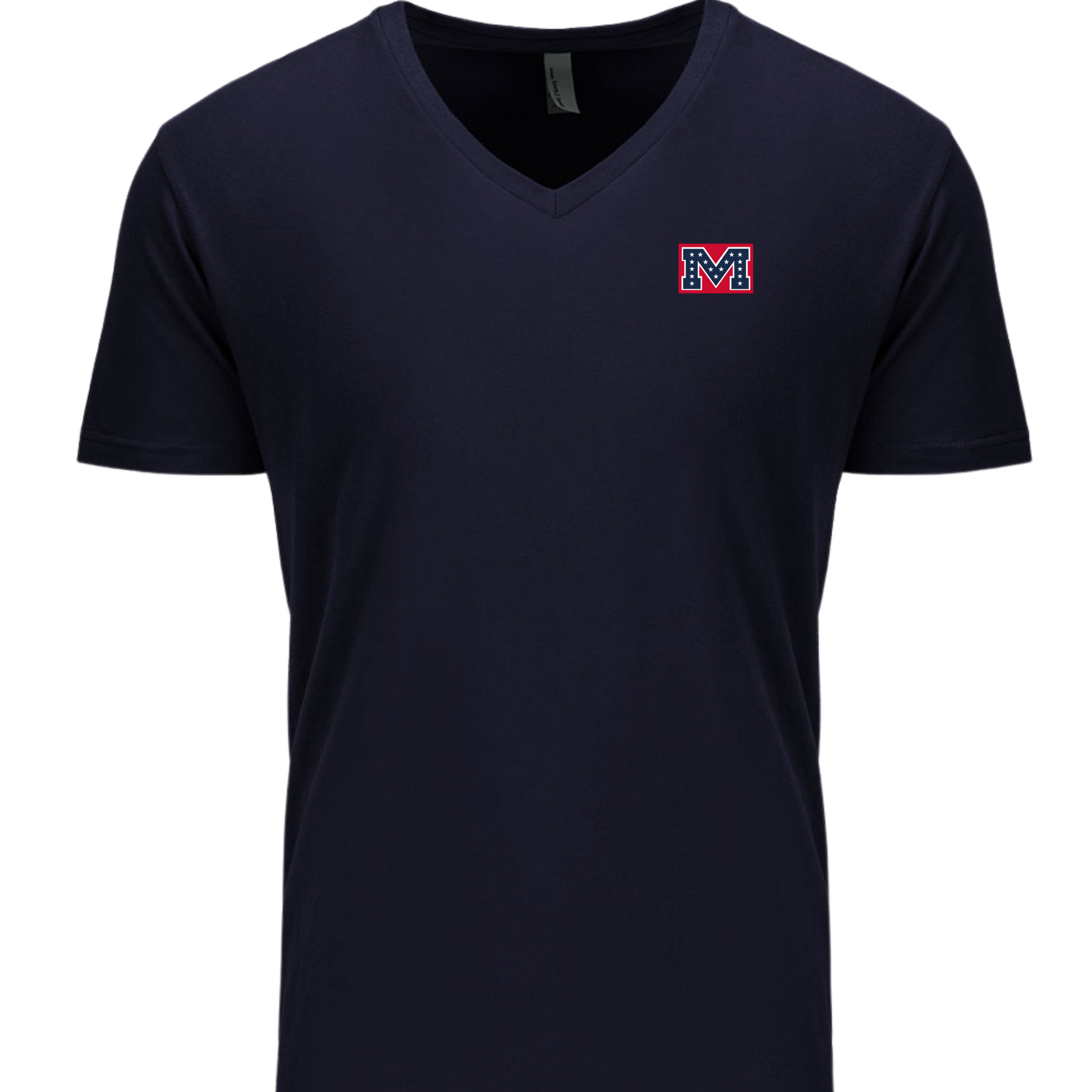 Unisex Cotton V-neck Tee (Navy, Battle-M logo)