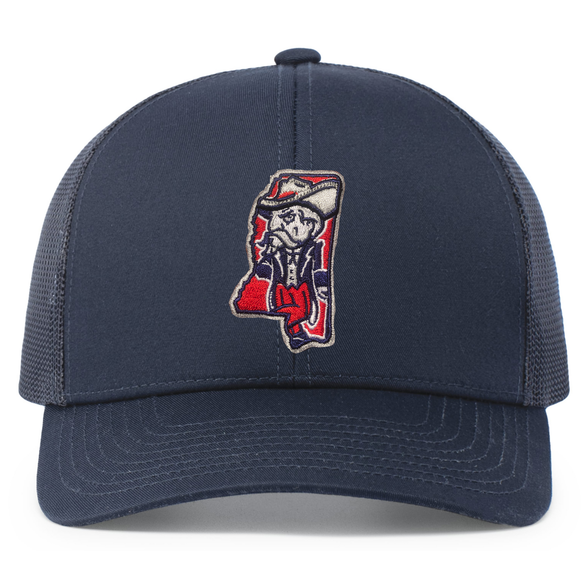 Mesh Back Cap (Navy, Colonel Reb Mississippi logo)