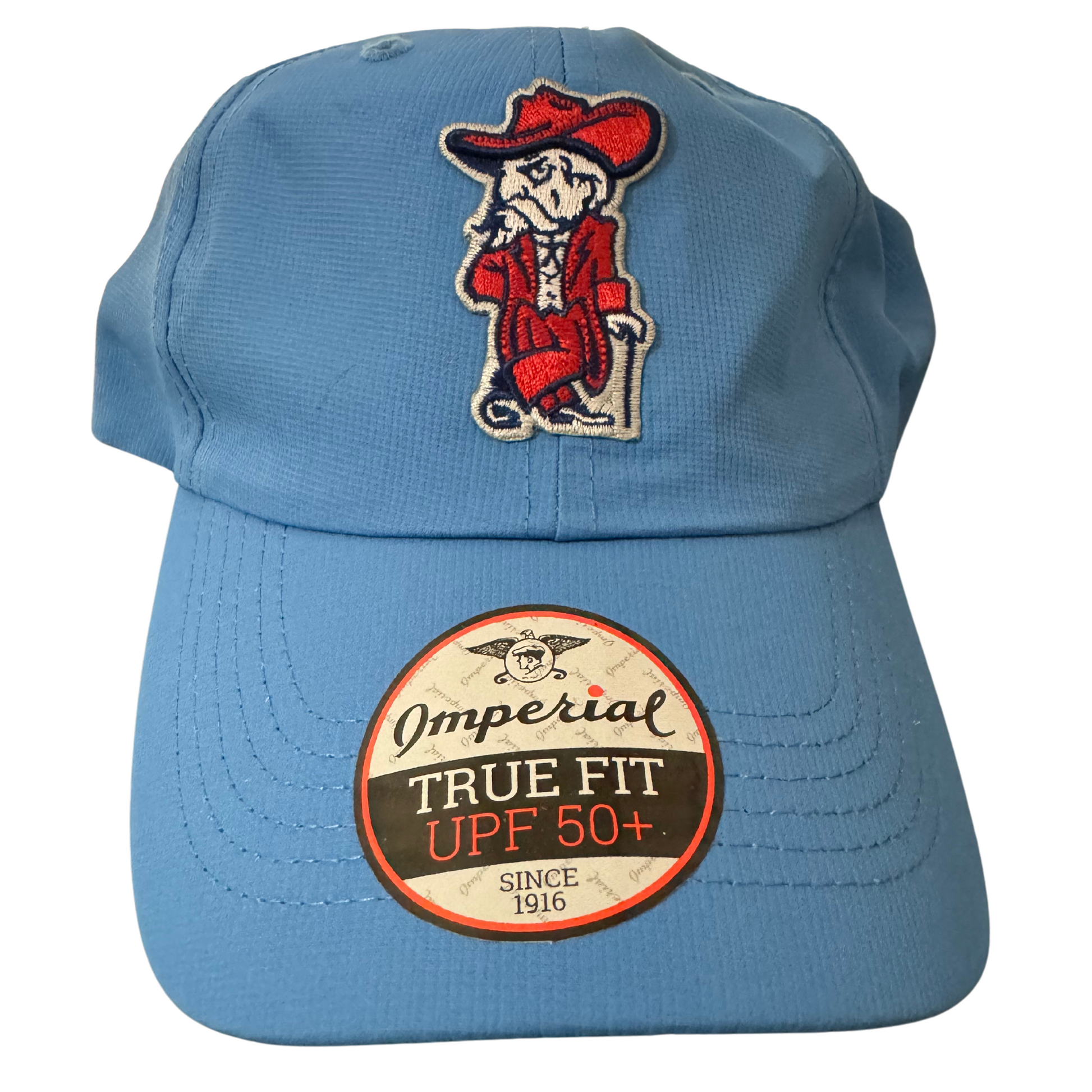 Polyester Low Profile Imperial Cap (Azure Blue, Colonel Reb Traditional Pose logo)
